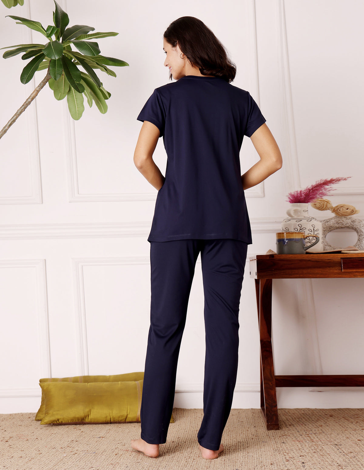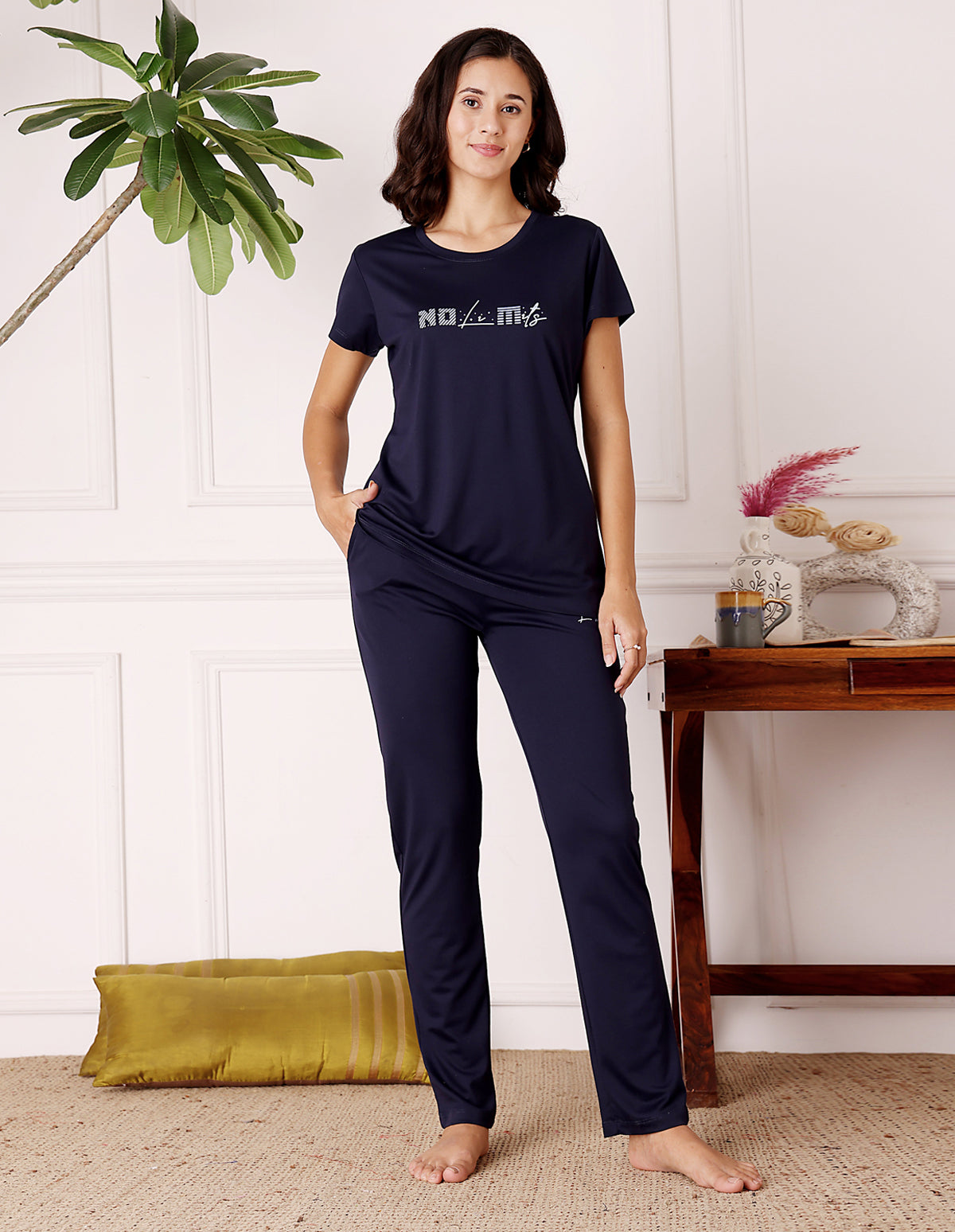 Enjoy ultimate comfort with Bodycare’s Women’s Loungewear Tshirt & Pyjama Set in Navy. Crafted from a stretchable tencel cotton blend, this set features a round neckline and regular sleeves, designed for relaxed nights and lasting durability. Hand wash recommended.