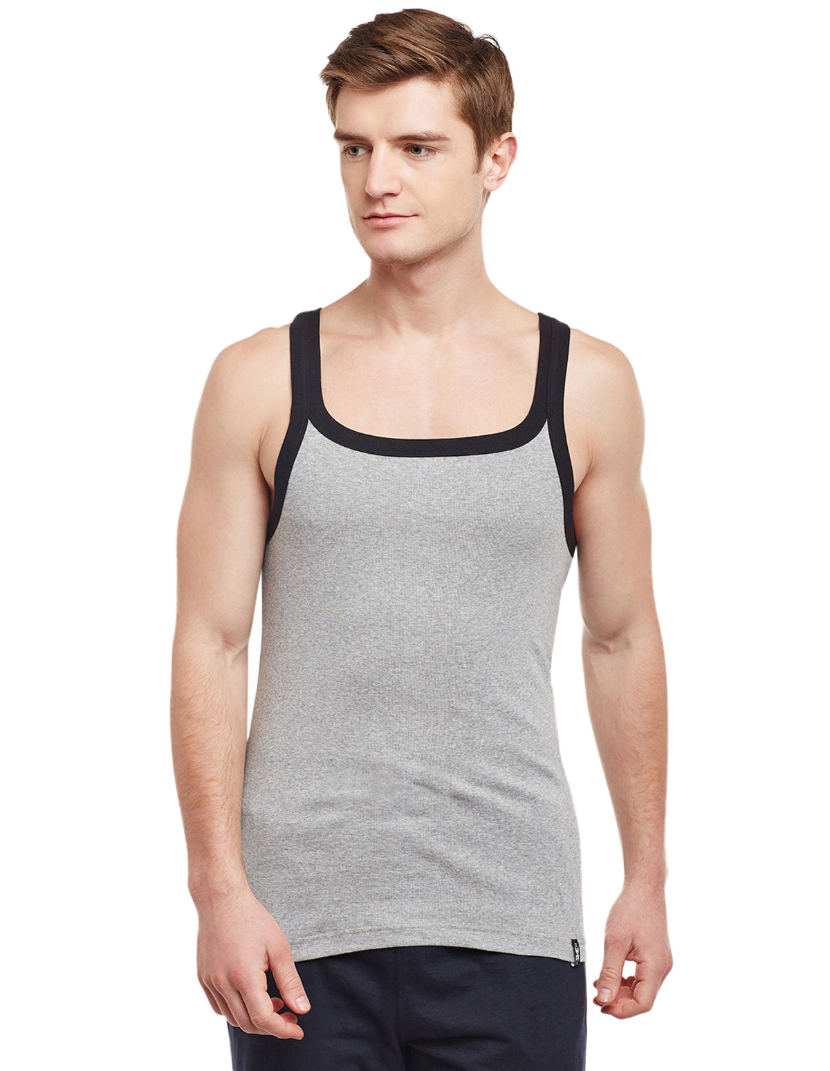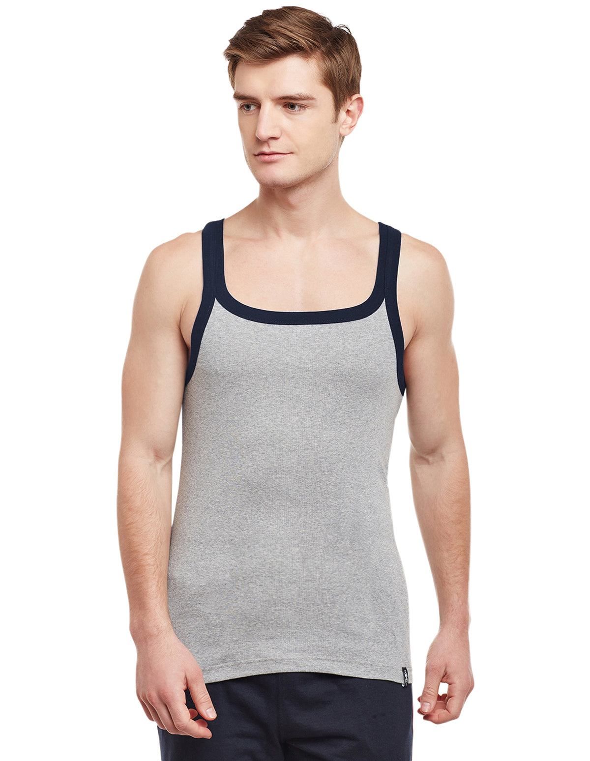 Upgrade your everyday essentials with the BODYX BX212W Men's Sleeveless Vest, crafted from super-combed cotton rib fabric for exceptional softness, breathability, and long-lasting comfort. Designed with a square neck and a modern fit, this Grey Melange vest features assorted colored shoulder straps that add a stylish edge to a classic staple.