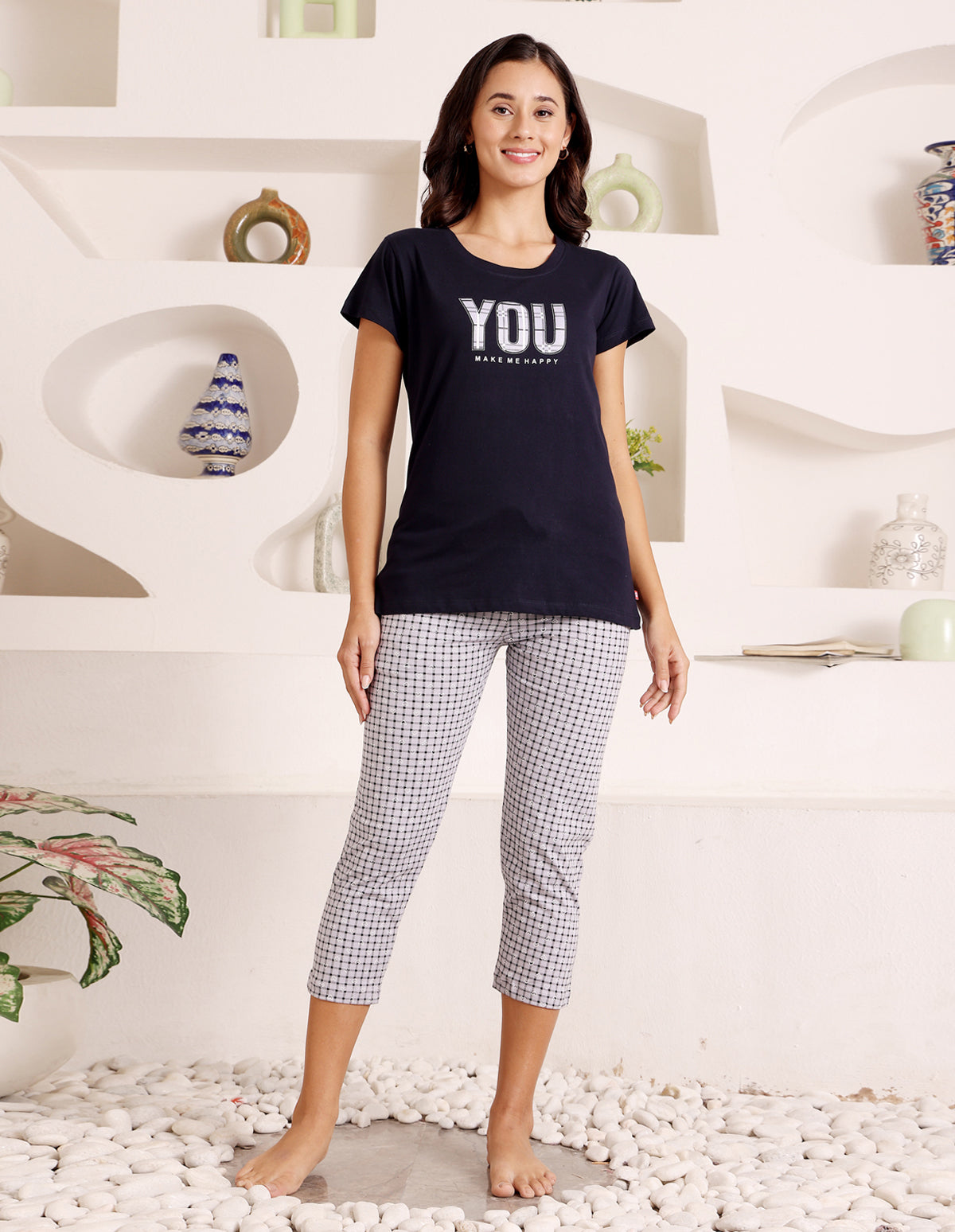 Enjoy premium comfort and style with Bodycare’s Women’s Loungewear Set in Navy Grey. Crafted from a soft combed cotton , this 2-piece set features a round neckline and regular sleeves, perfect for relaxing at home or unwinding in style.