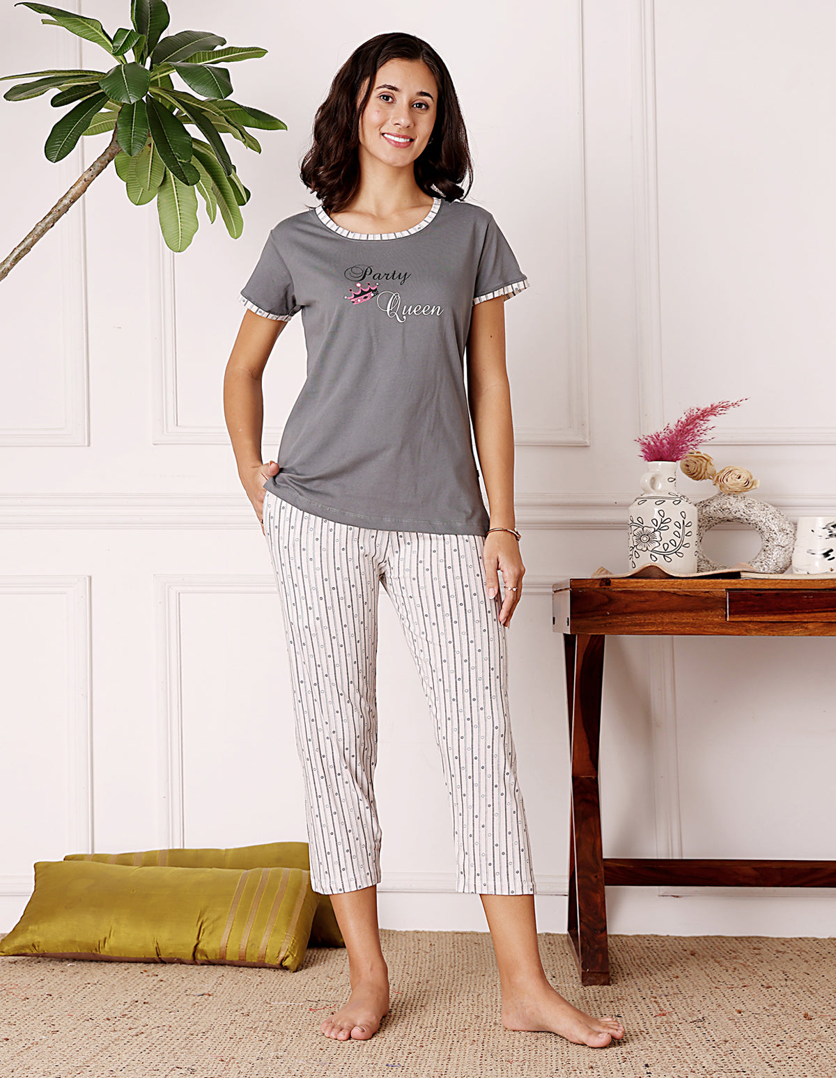 Stay cozy and stylish with Bodycare’s Women’s Loungewear Set in Dark Grey. Crafted from a soft combed cotton , this breathable 2-piece set features a round neckline and regular sleeves, perfect for relaxing or unwinding after a long day.