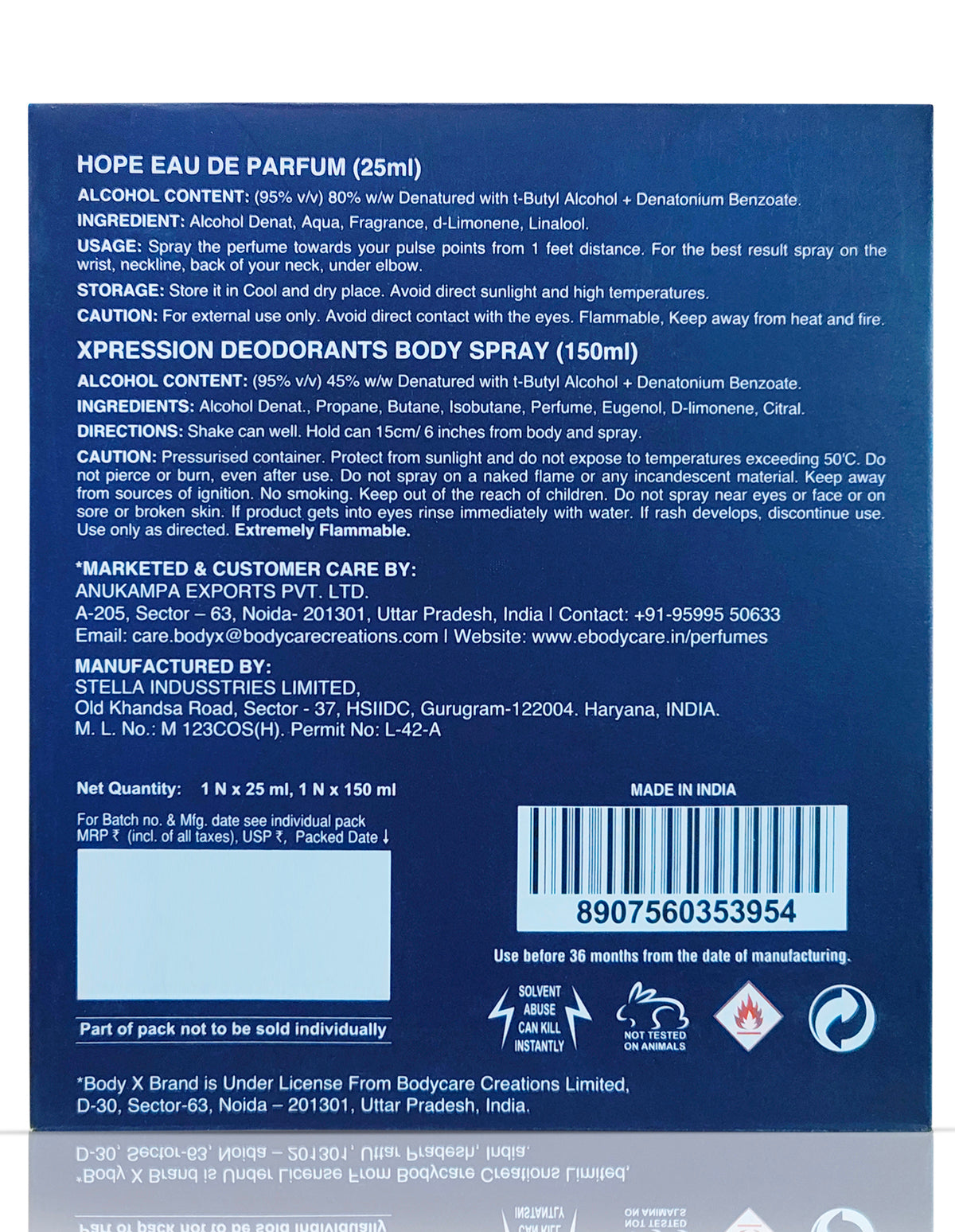| Middle Note | Xpression : Juniper, Coriander & Cinnamon Hope : Ginger/ Jasmine/ Nutmeg |