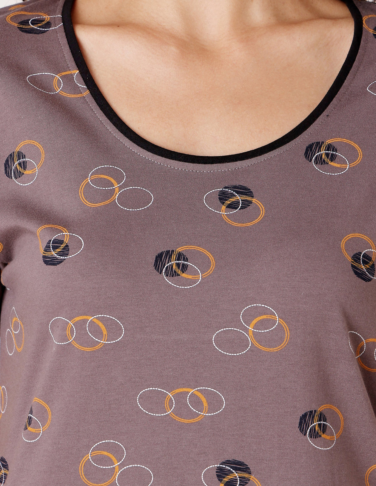 Relax comfortably in this multi coffee brown short night dress from Bodycare. Crafted from a breathableCotton with combed cotton for softness, it features a self-design pattern and regular sleeves—ideal for restful nights and lounging