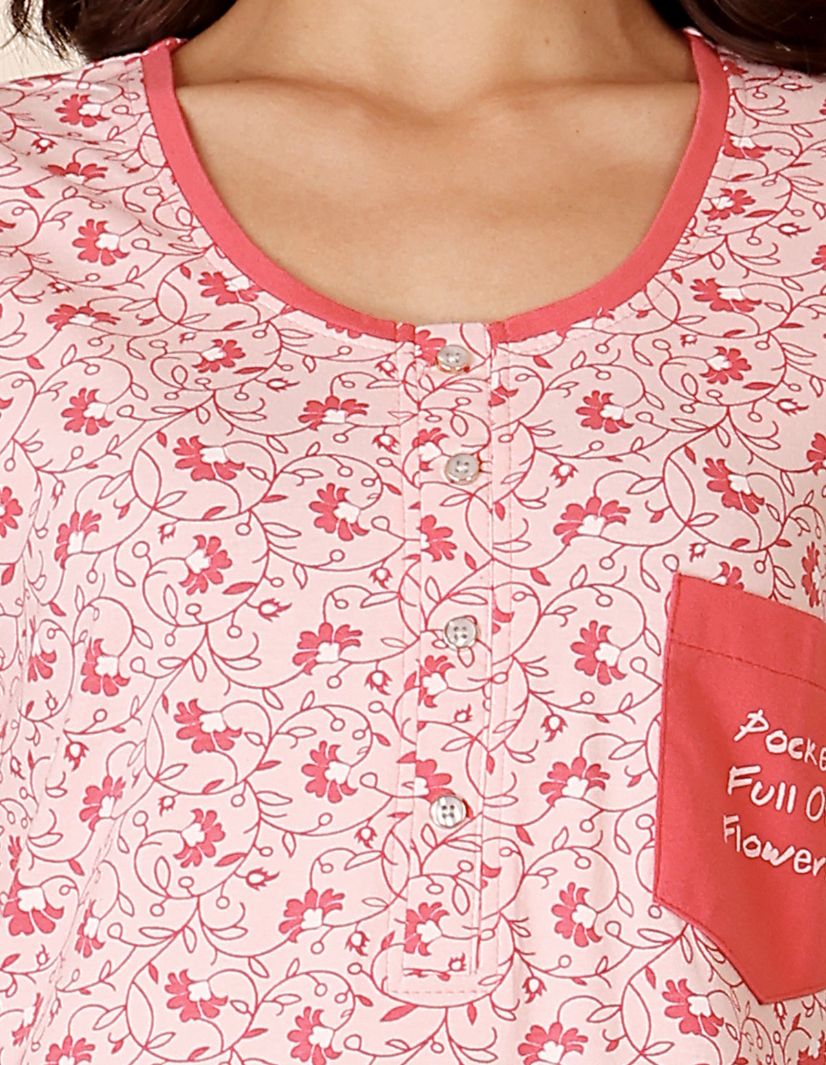 Relax in this red multi-colored short night dress from Bodycare. Crafted with a softCotton and combed cotton for added comfort, it features a self-design pattern and regular sleeves—perfect for comfortable nights and lounging
